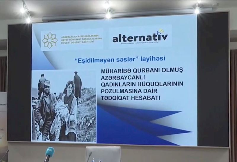 Daha sonra "Alternativ” Kommunikasiya Tədqiqatlar İctimai Birliyinin sədr müavini Jalə Quliyeva Ermənistan işğalının qurbanı olmuş azərbaycanlı qadınların hüquqlarının pozulması, üzləşdiyi zorakılıq, məhrumiyyət və iztirabların onların sağlamlığı və sosial statusu üçün uzunmüddətli nəticələrini təhlil edən Tədqiqat Hesabatı təqdim edib. O, müharibə qurbanı olmuş 50 qadın arasında sorğu keçirildiyini bildirib. Vurğulanıb ki, respondentlər arasında girov götürülərək fiziki, psixoloji və cinsi zorakılığa, müxtəlif ağır işgəncələrə məruz qalan qadınlar olub. Qadınlar məcburi köçkünlük, ailə üzvlərinin itirilməsi, əmlaklarının talan olunması və digər insanlıq əleyhinə əməllərlə üzləşiblər.